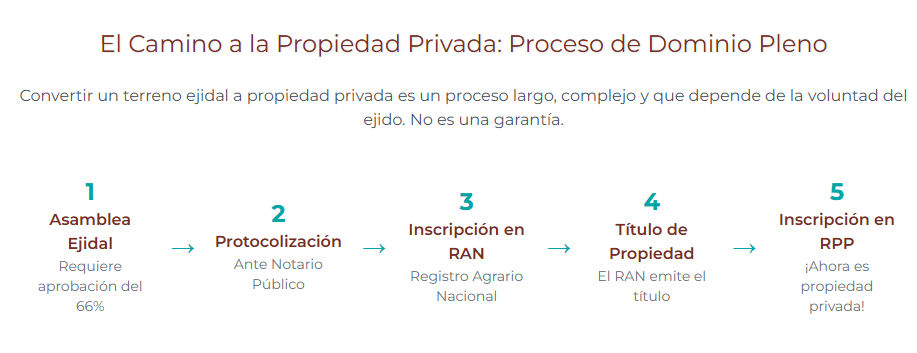 Sí, a través de un proceso llamado "Adopción del Dominio Pleno". Sin embargo, es un proceso largo, costoso, burocráticamente complejo y no garantizado, ya que depende de la votación de la Asamblea Ejidal. Comprar un terreno con la mera "promesa" de este proceso es una inversión de altísimo riesgo.