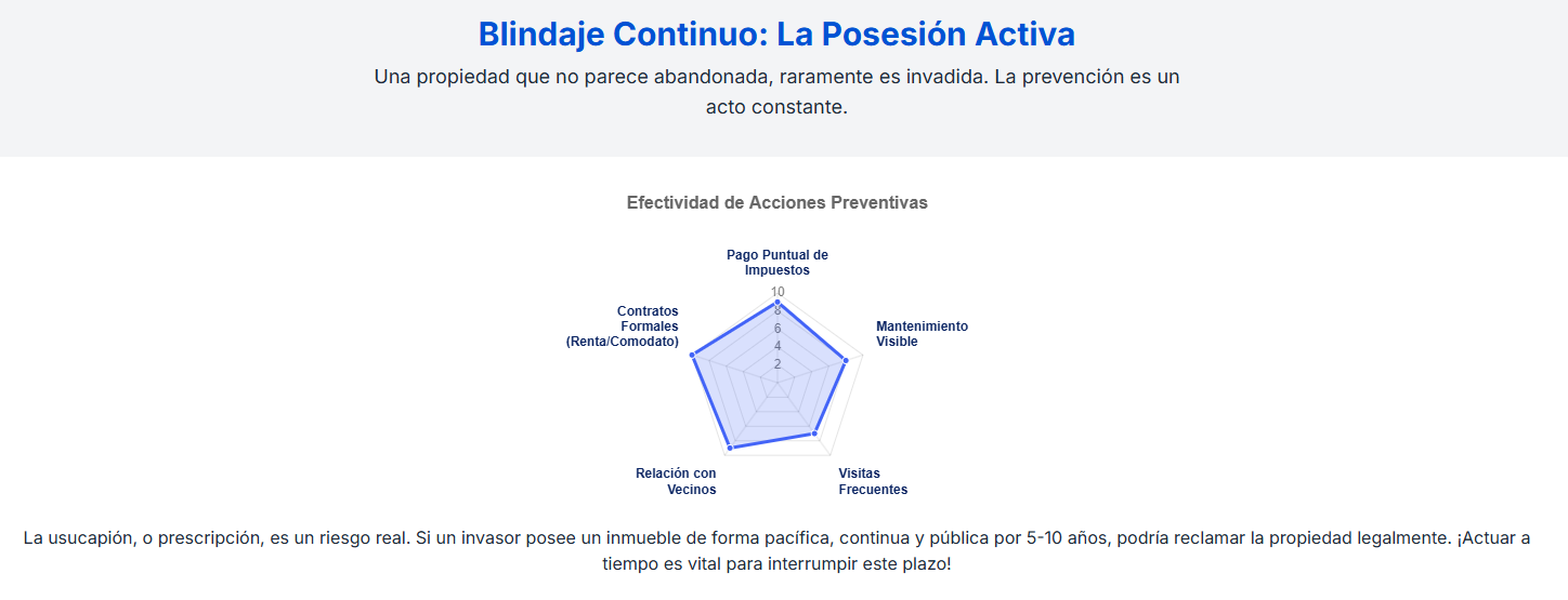 Una propiedad que parece abandonada es una invitación al despojo. Debes ejercer "actos de dominio" para demostrar que tienes el control: