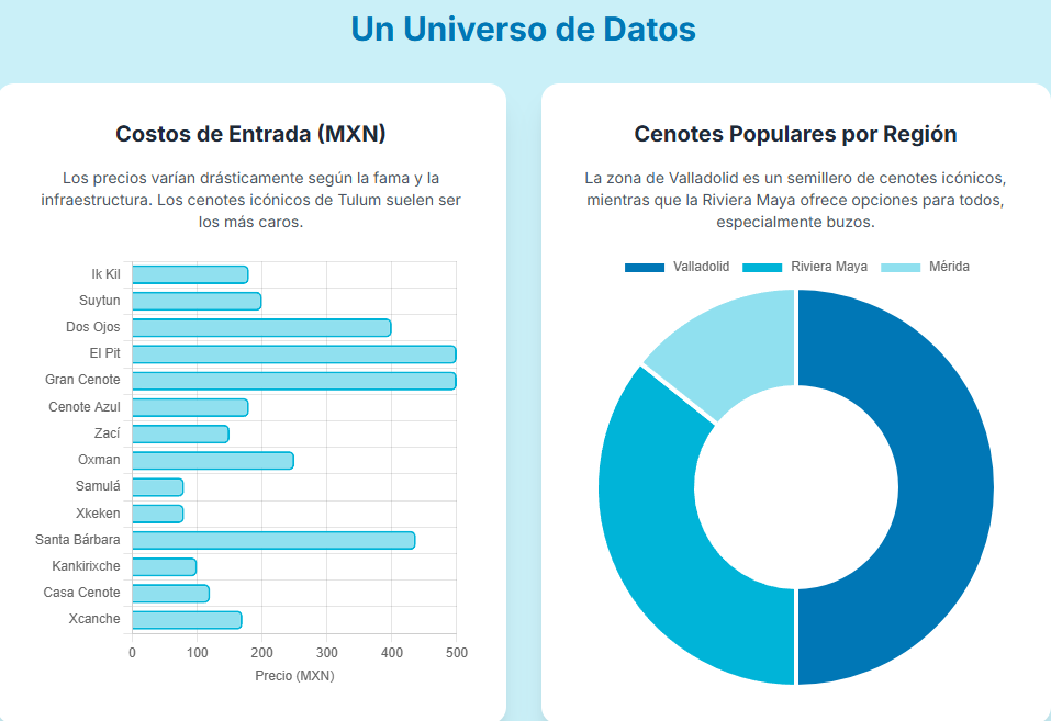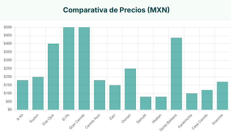 - Cenotes Populares (Valladolid, Riviera Maya): $150 - $350 MXN.