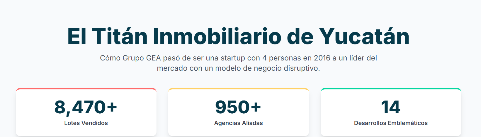 Respuesta: Desde 2016, Grupo Gea ha experimentado una evolución notable. Pasó de ser una empresa emergente a convertirse en uno de los desarrolladores inmobiliarios más importantes de Yucatán. Su crecimiento se ha marcado por el lanzamiento de proyectos cada vez más ambiciosos, la expansión de su equipo y la consolidación de su reputación en el mercado, obteniendo reconocimientos como el de "Súper Empresa".