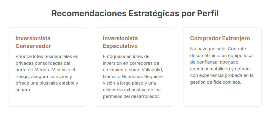 - Para el Inversionista Especulativo: Enfocarse en lotes de inversión en corredores de crecimiento designados, como los aledaños a la ruta del Tren Maya (Valladolid, Izamal) o en zonas de expansión industrial (Hunucmá). Estos ofrecen precios de entrada más bajos y un mayor potencial de plusvalía, pero requieren una visión a largo plazo y una diligencia debida exhaustiva sobre los permisos y planes de infraestructura del desarrollador.