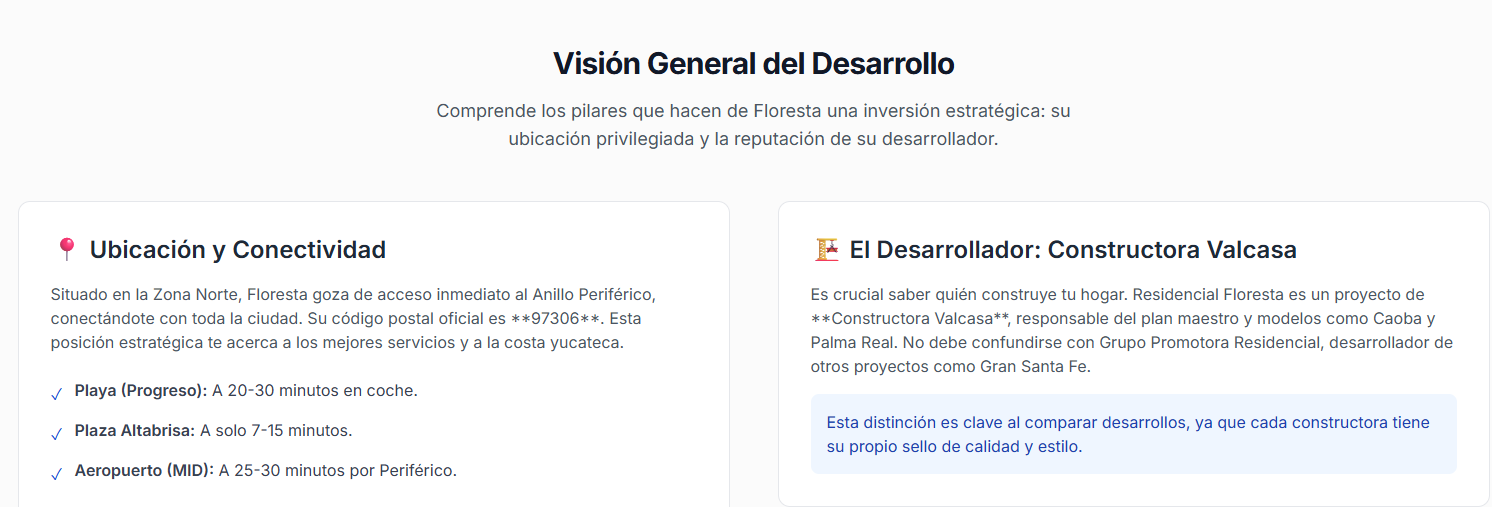 Es pertinente señalar que Grupo Promotora Residencial, desarrolladora de otros proyectos exitosos como Residencial Gran Santa Fe Norte, no tiene relación directa con el desarrollo de Floresta. Al comparar ambos fraccionamientos, se están evaluando productos de dos constructoras distintas.