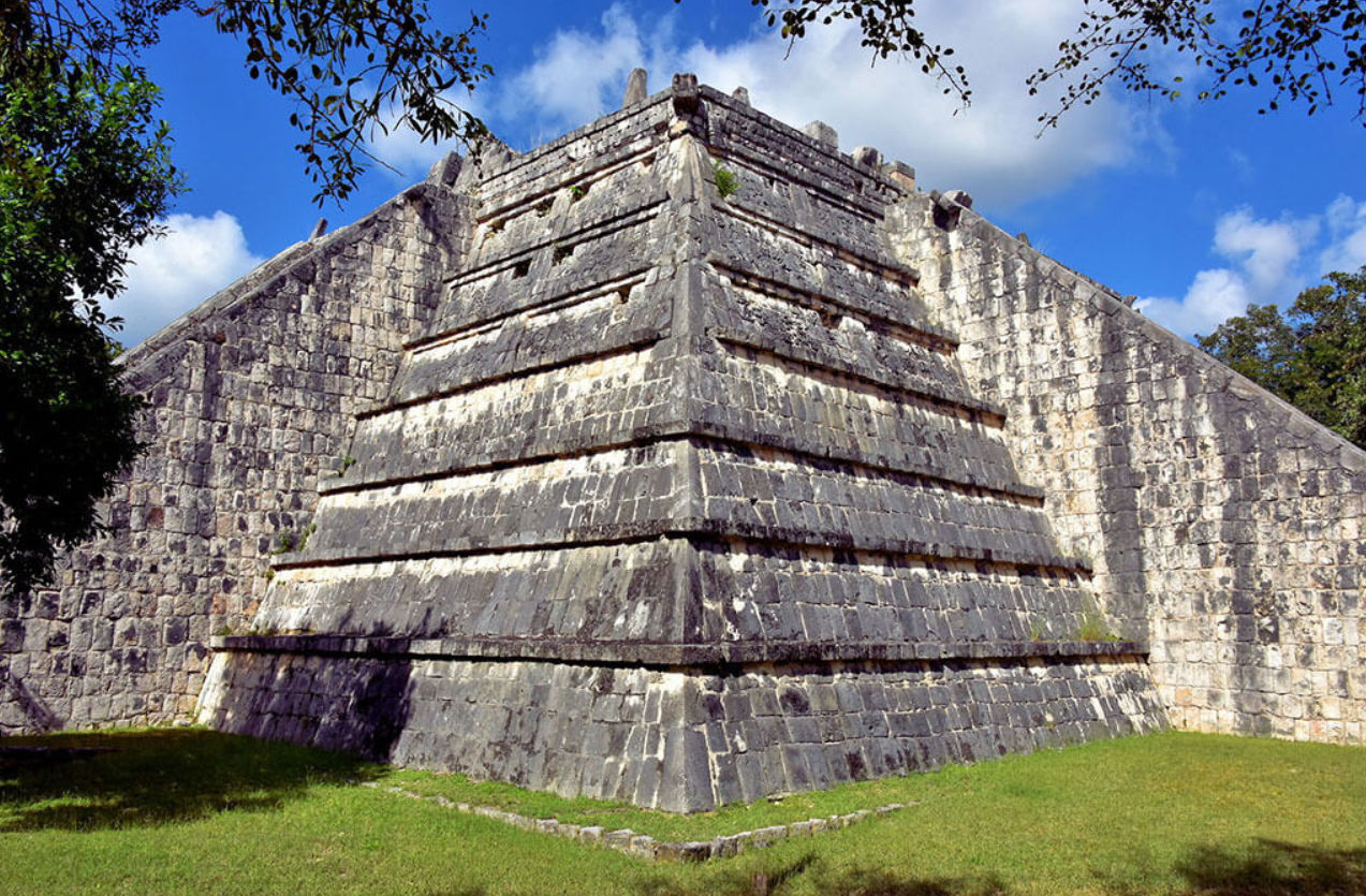 Es una pirámide de cuatro lados con una escalinata en cada uno, que servía como tumba para personajes de la nobleza maya, conectada a una cavidad subterránea.