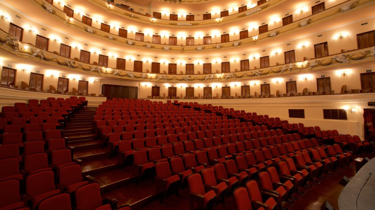 Uno de los tesoros más valiosos del teatro se encuentra en el techo de la sala principal. Se trata de un fresco impresionante realizado por artistas italianos, que representa musas y alegorías de las artes. La iluminación de la gran araña central resalta los colores y detalles de esta obra pictórica, haciendo que cada función comience antes de que se abra el telón, simplemente con la contemplación del entorno.